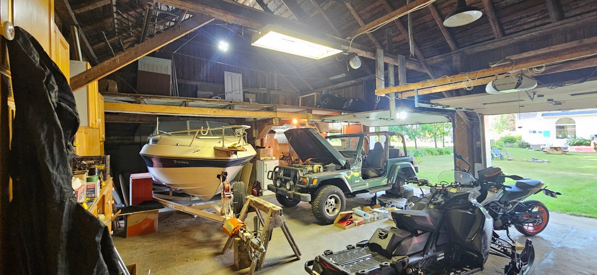 Inclus : Stores, luminaires sauf celui de la salle de bain et celui du bureau au rez-de-chaussée, 2 ouvre-portes de garage incluant les manettes, aspirateur-central et les accessoires, 2 poêles à bois et le bois restant au moment de l'acte de vente, les armoires de rangement dans le garage double, branchement NEMA 1450 (240 volts, 40 amp)