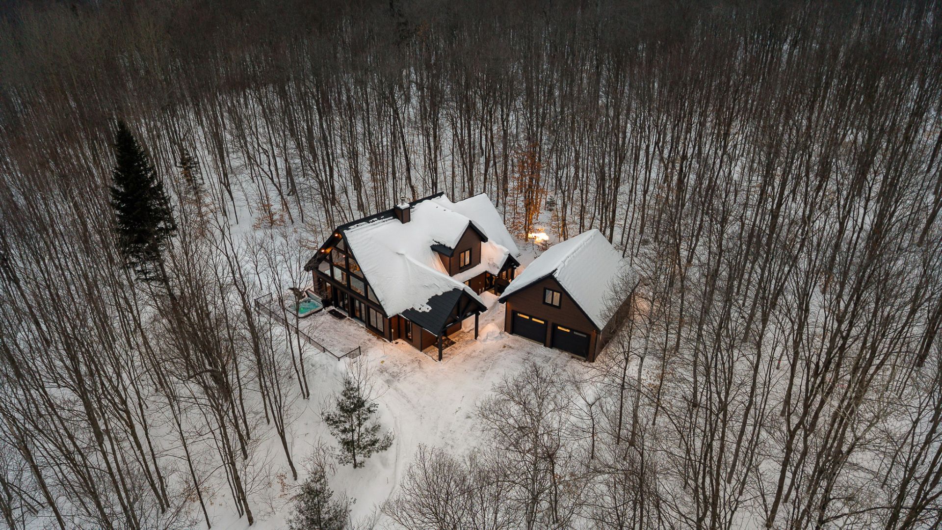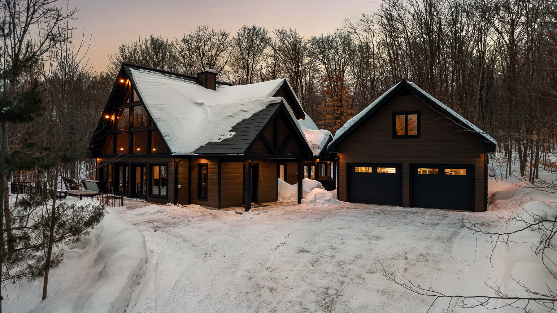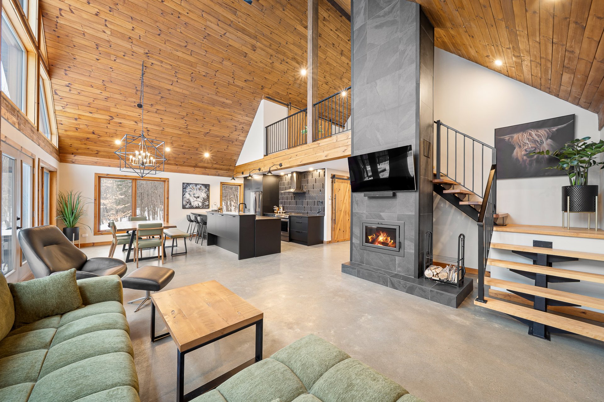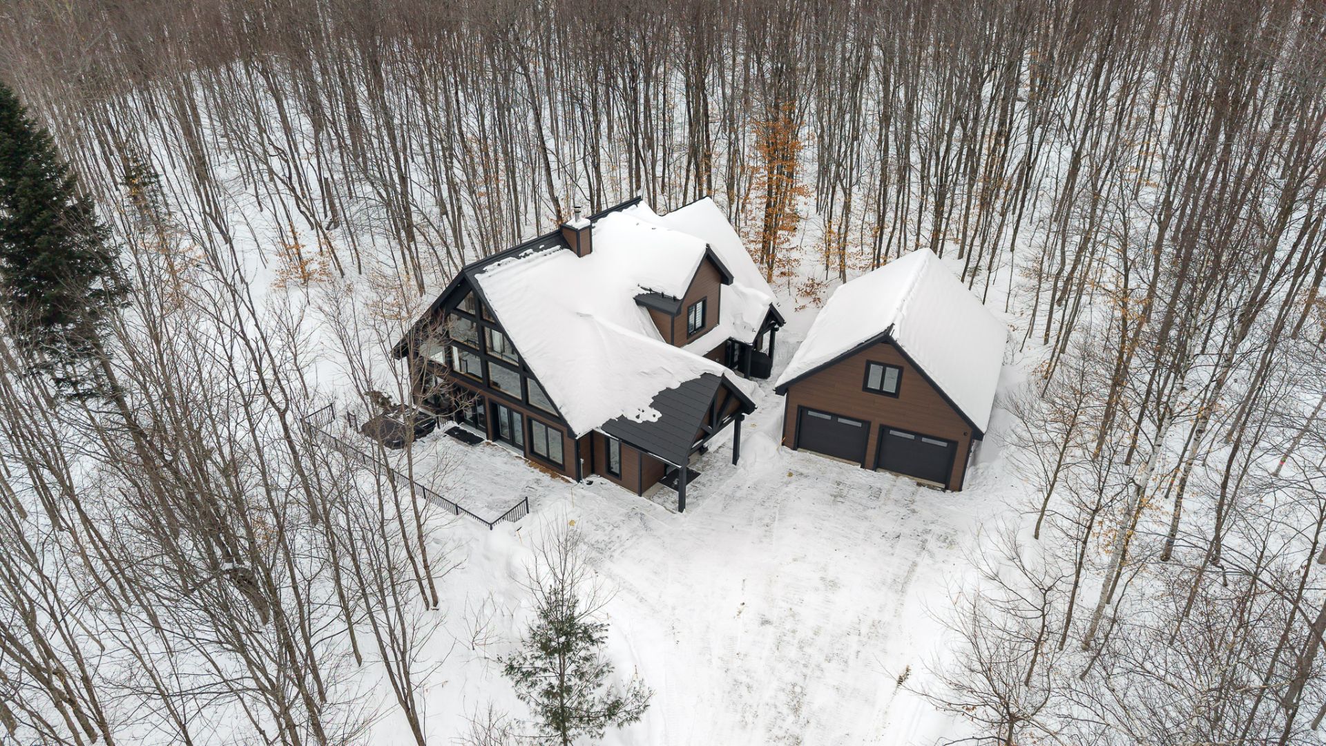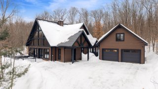 Coup de coeur assuré ! Ce superbe chalet contemporain vous plonge au coeur de la nature, bordé par la forêt et sans aucun voisin à l'arrière pour une intimité totale. Implantée sur un vaste terrain de 66 016 pi², cette propriété clé en main offre 3 chambres à coucher, 2 salles de bains complètes et un garage double pratique et spacieux. L'aire de vie, baignée de lumière, impressionne avec son plafond cathédrale de 25 pieds et son foyer au bois au cachet chaleureux. Les planchers chauffants au rez-de-chaussée assurent un confort absolu. Un équilibre parfait entre modernité, élégance et sérénité. ***Le tout vendu entièrement meublé !***