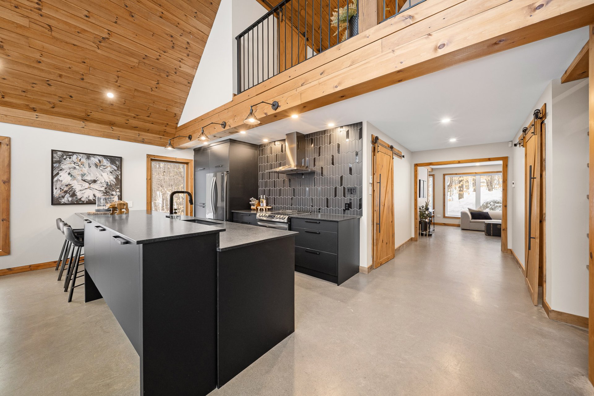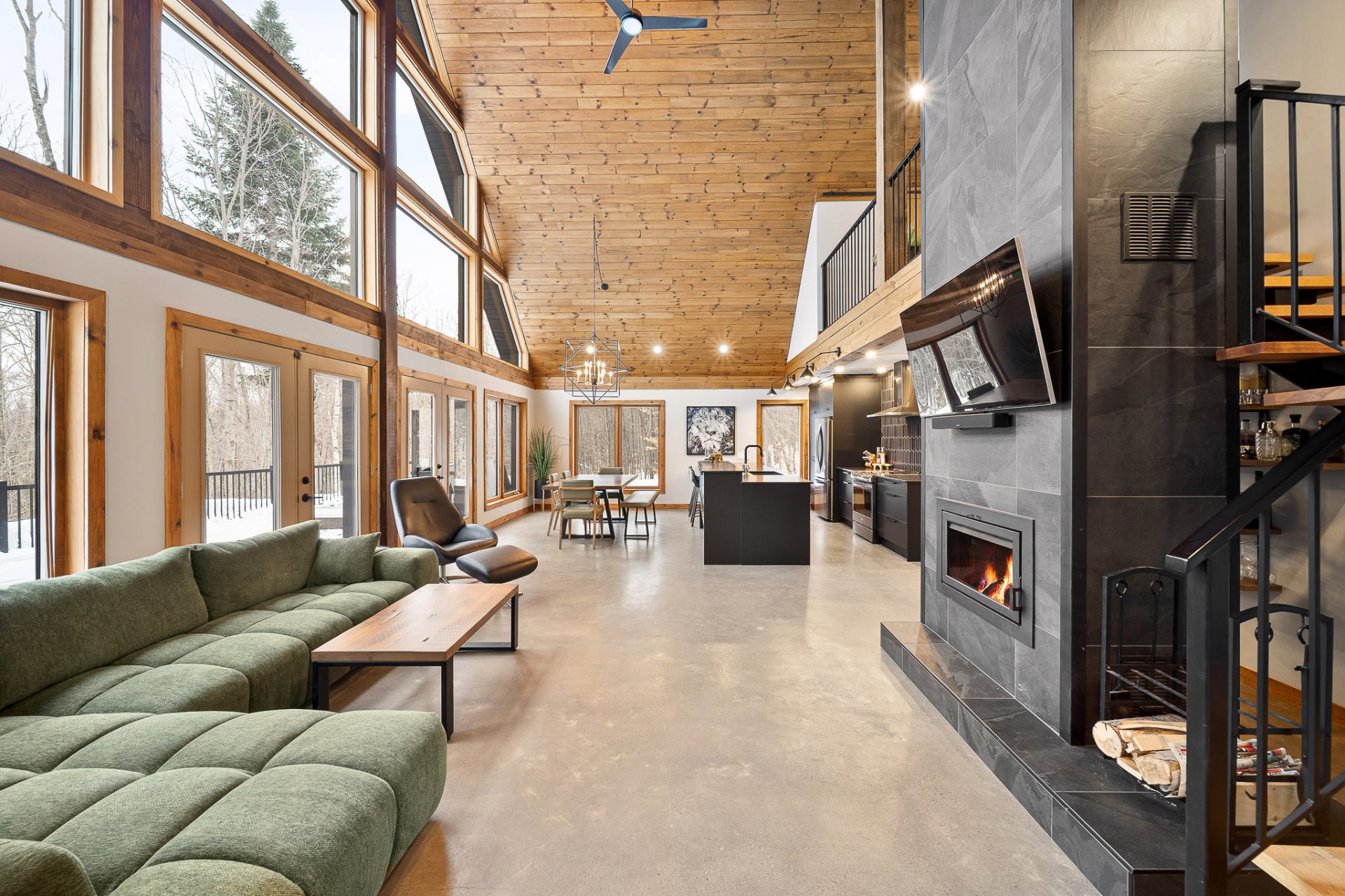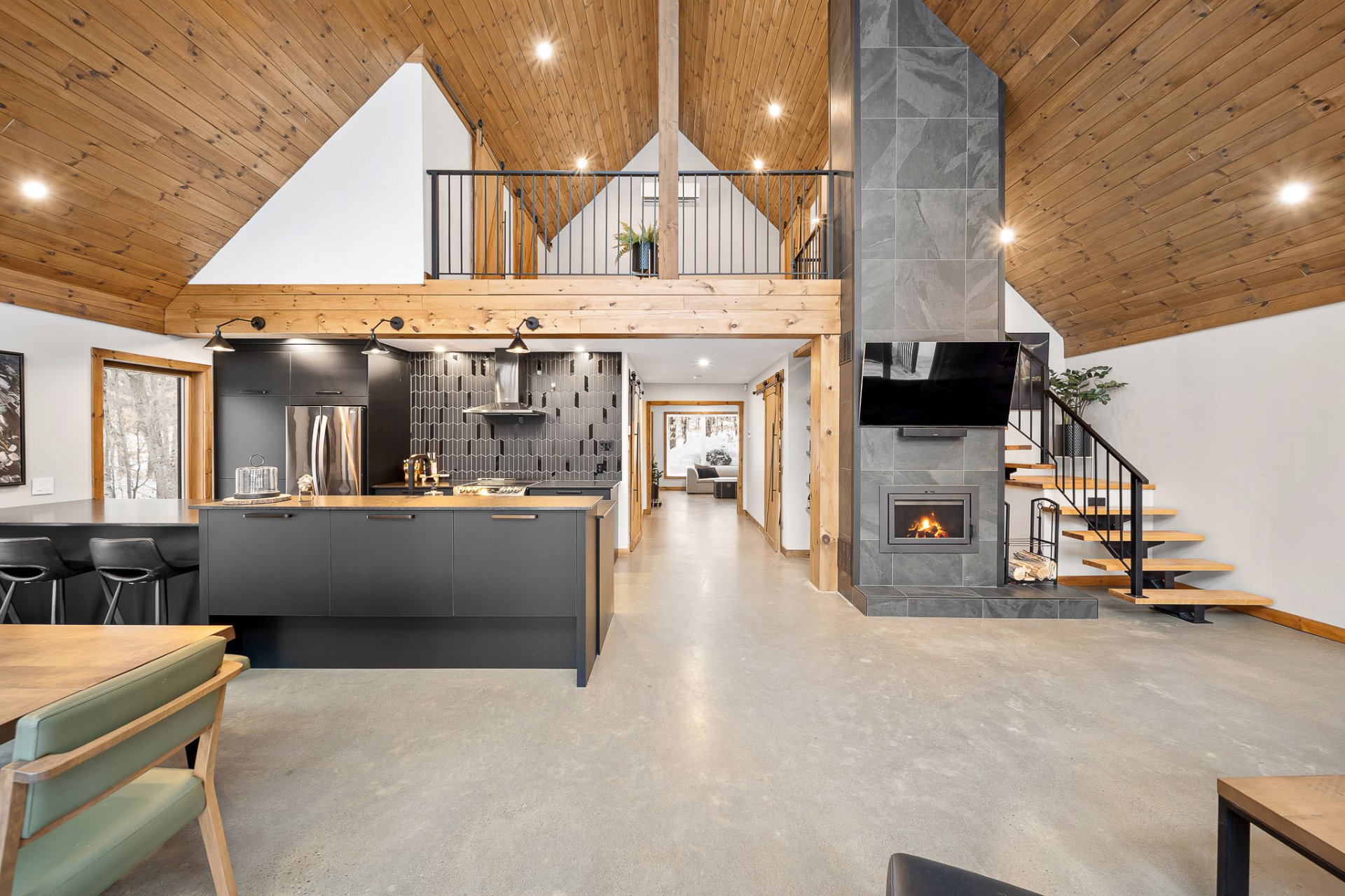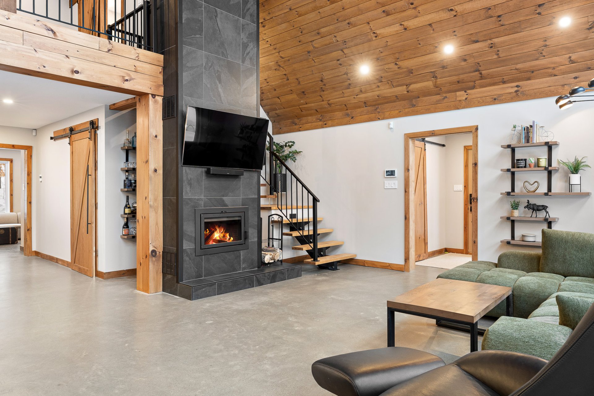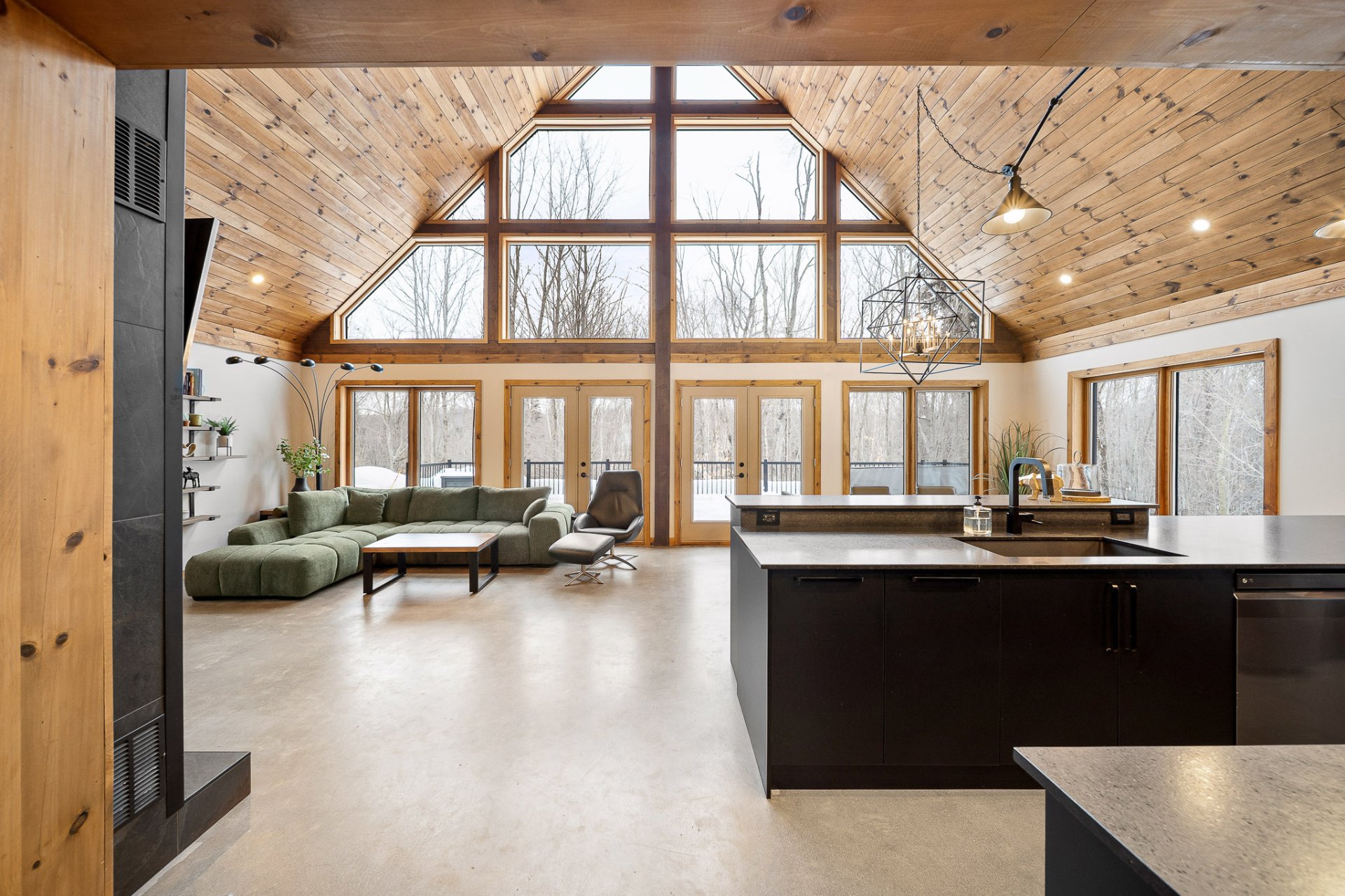 Coup de coeur assuré ! Ce superbe chalet contemporain vous plonge au coeur de la nature, bordé par la forêt et sans aucun voisin à l'arrière pour une intimité totale. Implantée sur un vaste terrain de 66 016 pi², cette propriété clé en main offre 3 chambres à coucher, 2 salles de bains complètes et un garage double pratique et spacieux. L'aire de vie, baignée de lumière, impressionne avec son plafond cathédrale de 25 pieds et son foyer au bois au cachet chaleureux. Les planchers chauffants au rez-de-chaussée assurent un confort absolu. Un équilibre parfait entre modernité, élégance et sérénité. ***Le tout vendu entièrement meublé !***