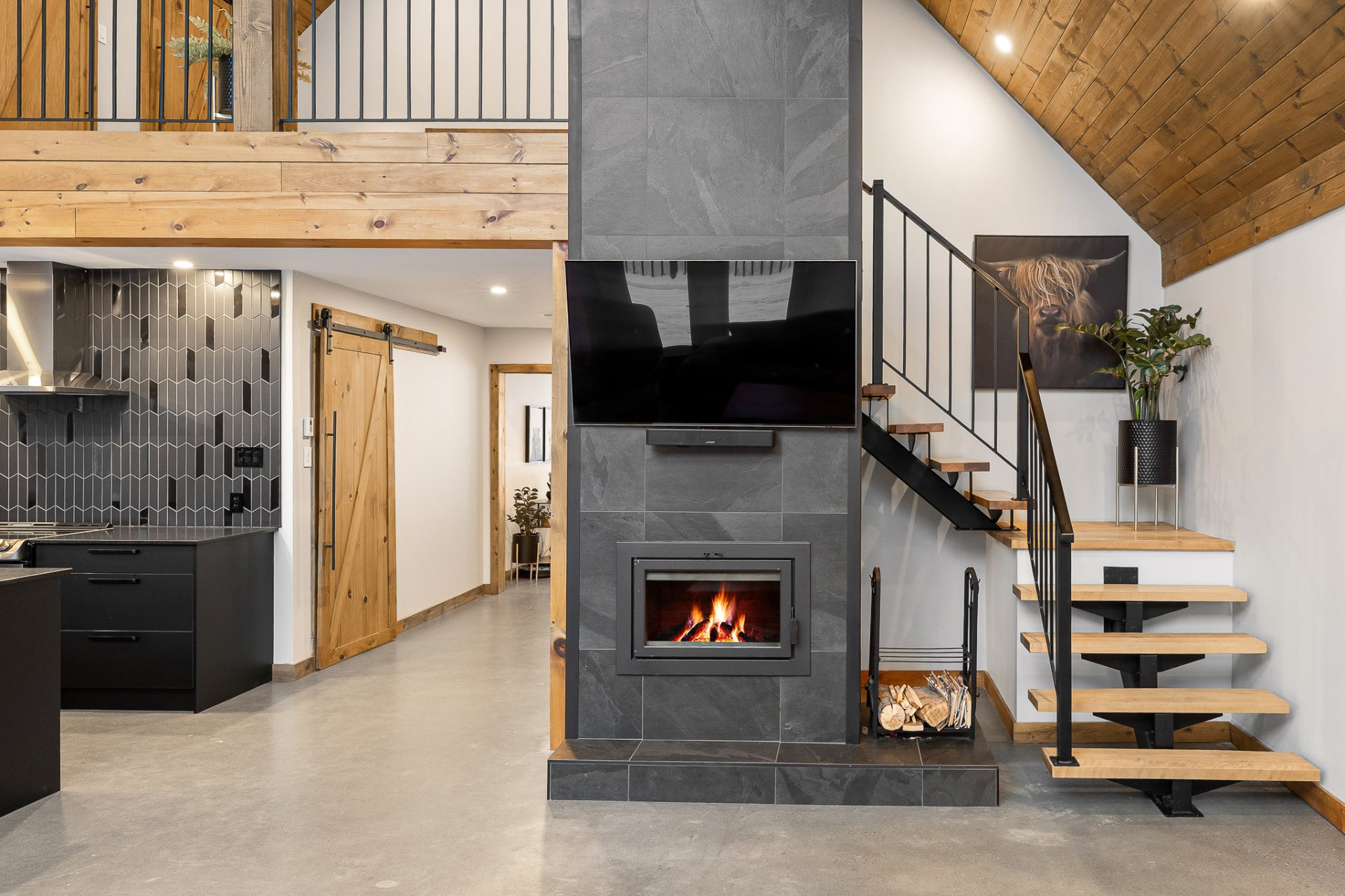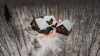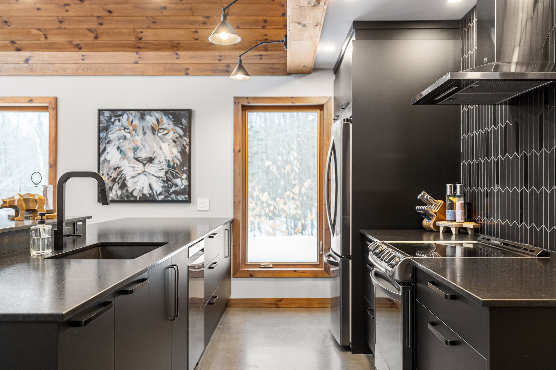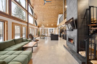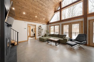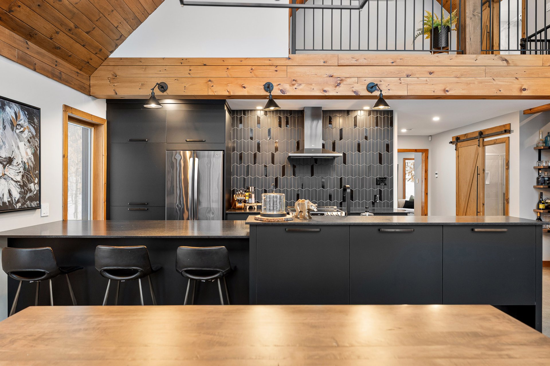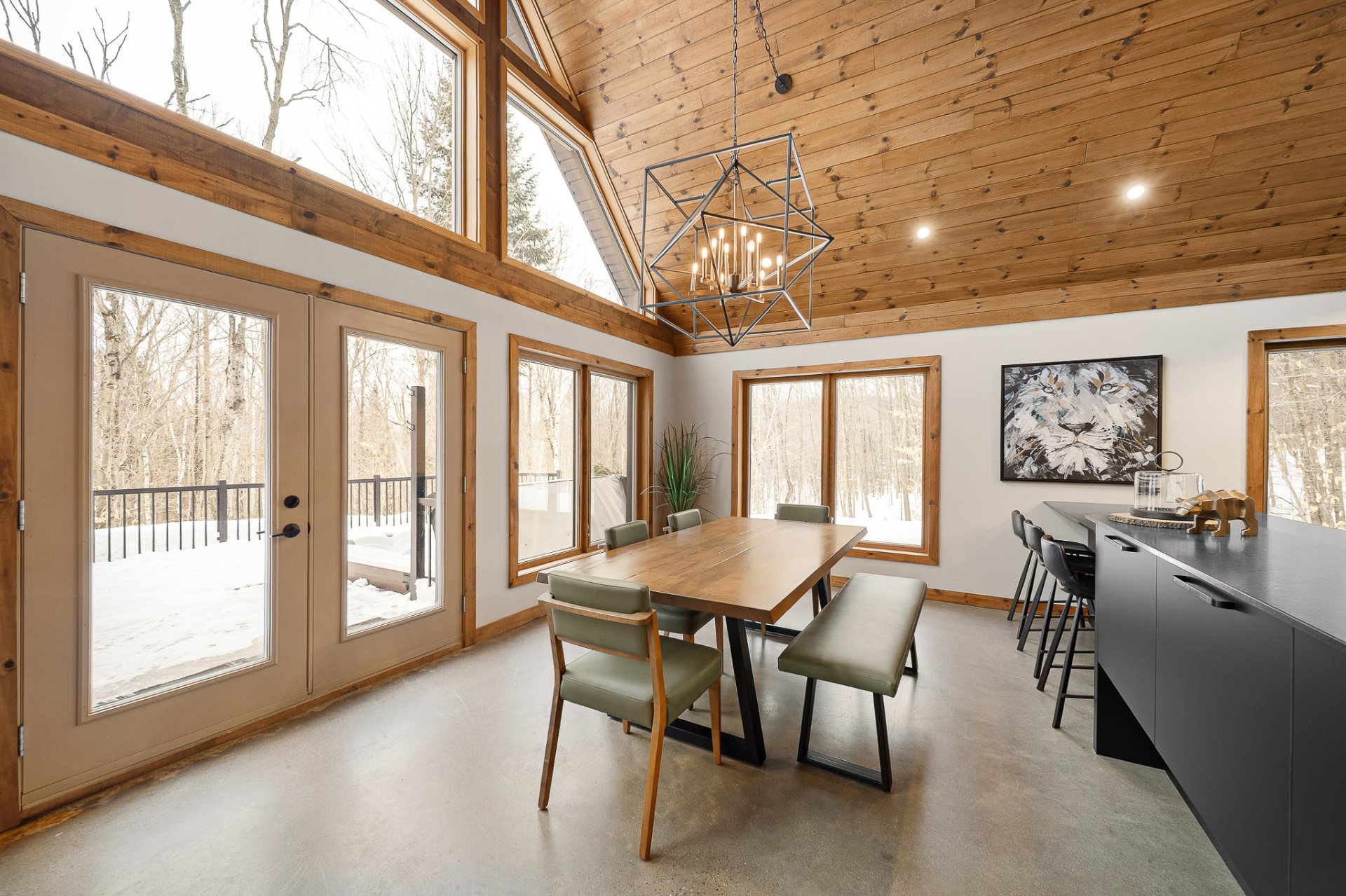 Coup de coeur assuré ! Ce superbe chalet contemporain vous plonge au coeur de la nature, bordé par la forêt et sans aucun voisin à l'arrière pour une intimité totale. Implantée sur un vaste terrain de 66 016 pi², cette propriété clé en main offre 3 chambres à coucher, 2 salles de bains complètes et un garage double pratique et spacieux. L'aire de vie, baignée de lumière, impressionne avec son plafond cathédrale de 25 pieds et son foyer au bois au cachet chaleureux. Les planchers chauffants au rez-de-chaussée assurent un confort absolu. Un équilibre parfait entre modernité, élégance et sérénité. ***Le tout vendu entièrement meublé !***