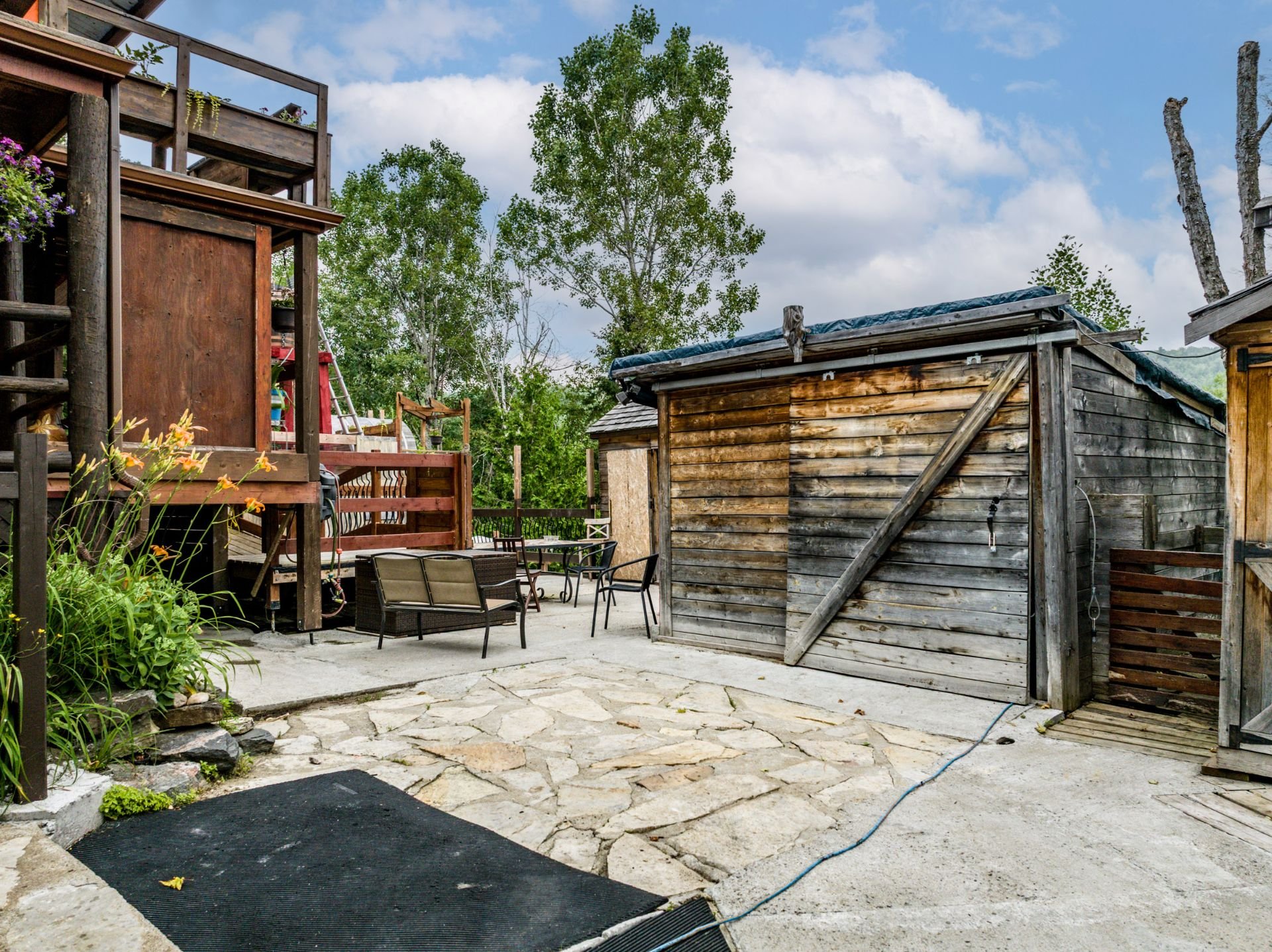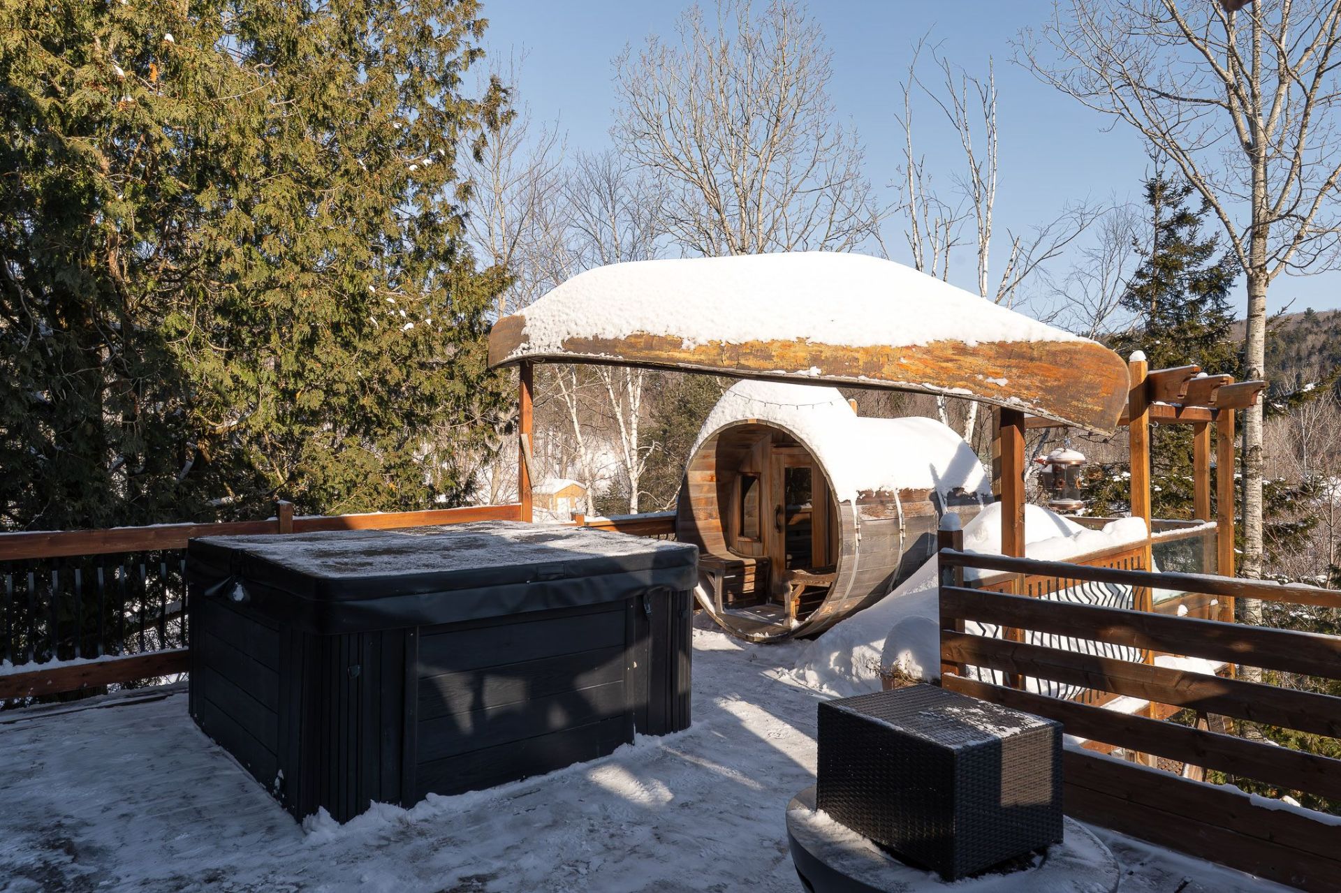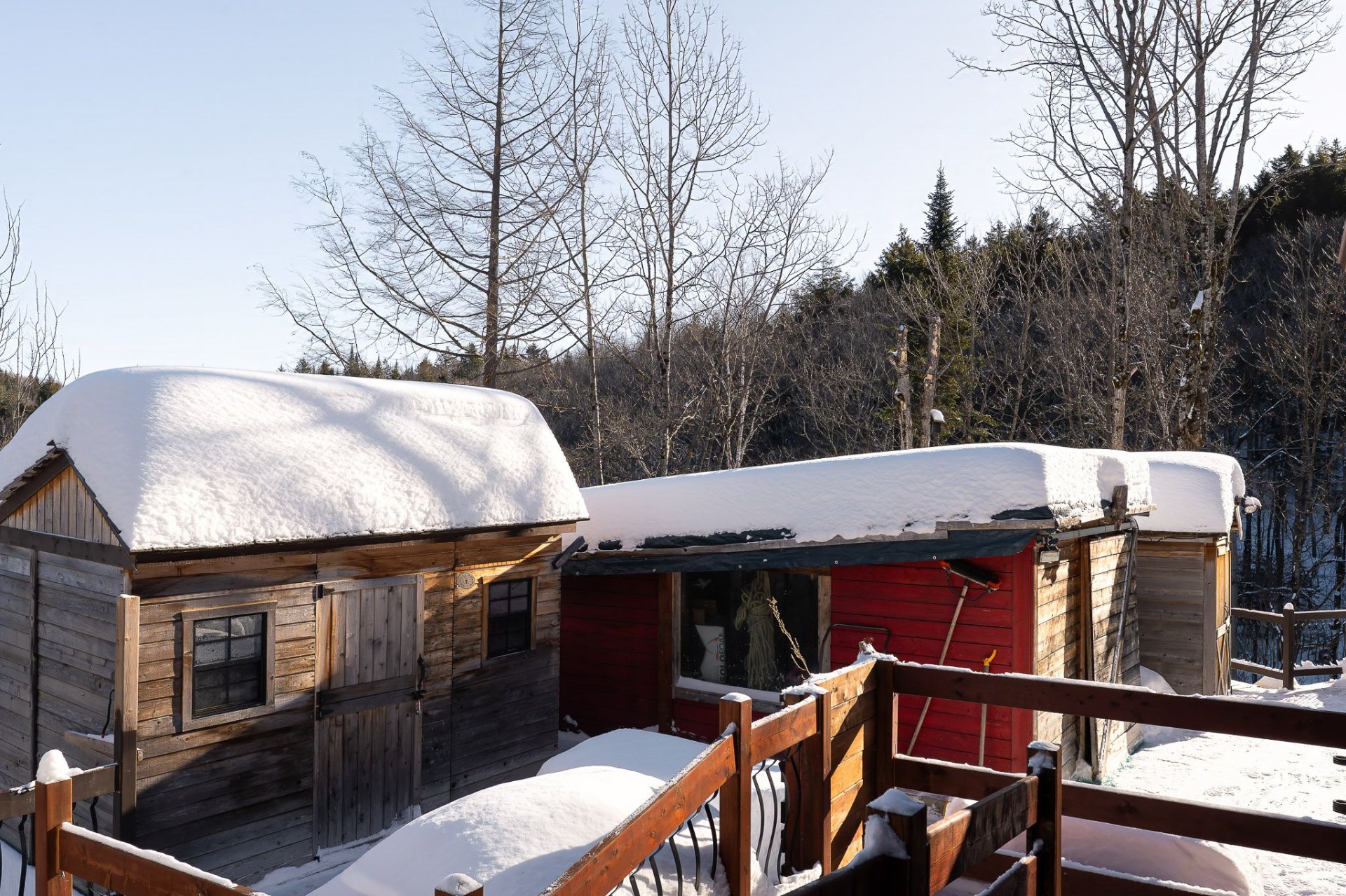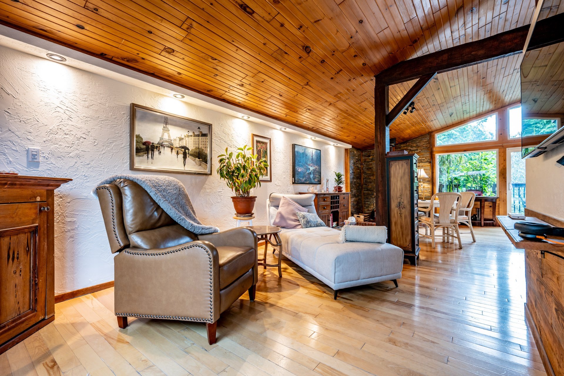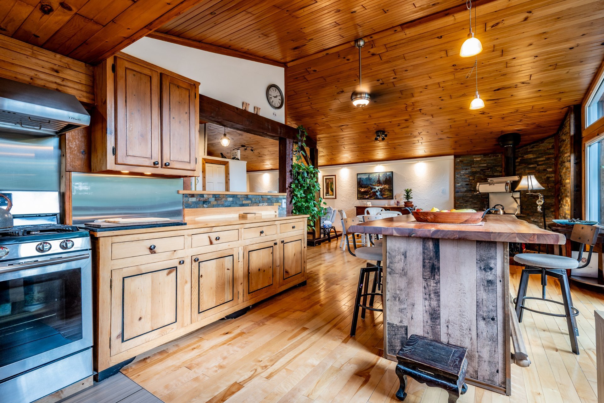 Inclus : Rideaux et stores (sauf dans chambre des maîtres). Cuisinière au gaz propane, cuisinière d'antan au bois, poêle à combustion lente et banc pour bois. Balayeuse centrale, réfrigérateur, lave-vaisselle, hotte, micro-ondes et grand îlot dans salle à dîner avec tabourets. Air climatisé/chauffage. Armoire de cuisine, meuble d'entrée et penderie, ventilateurs de plafond, spa et sauna et leurs mobiliers et foyer au propane. Support télé, bahut-buffet ancien dans salle à manger et meuble 3 portes au RDC