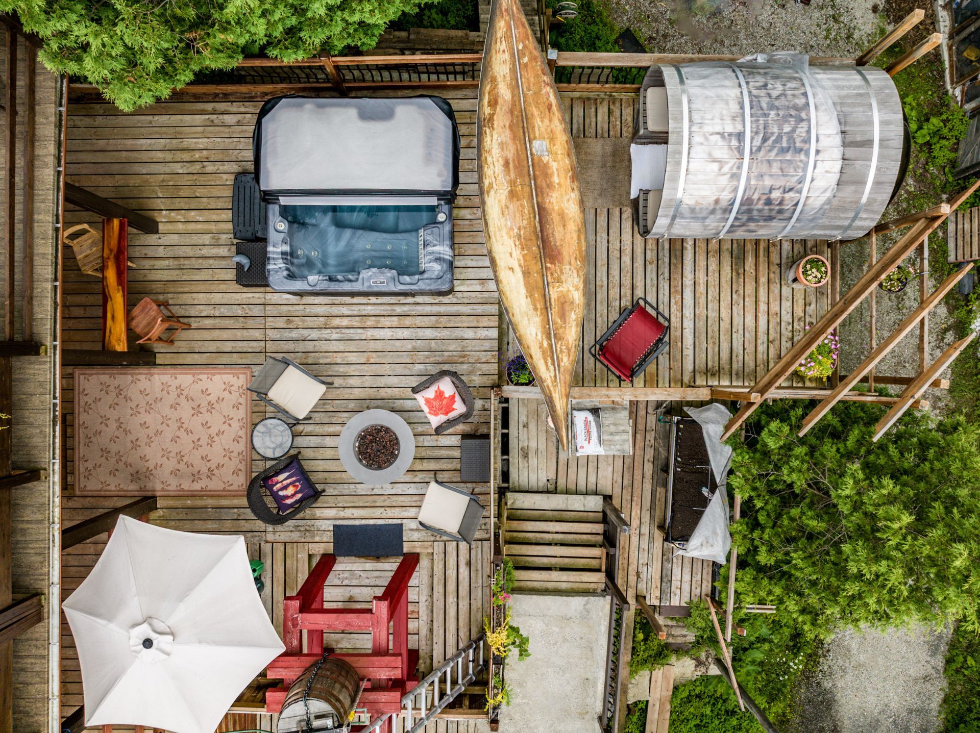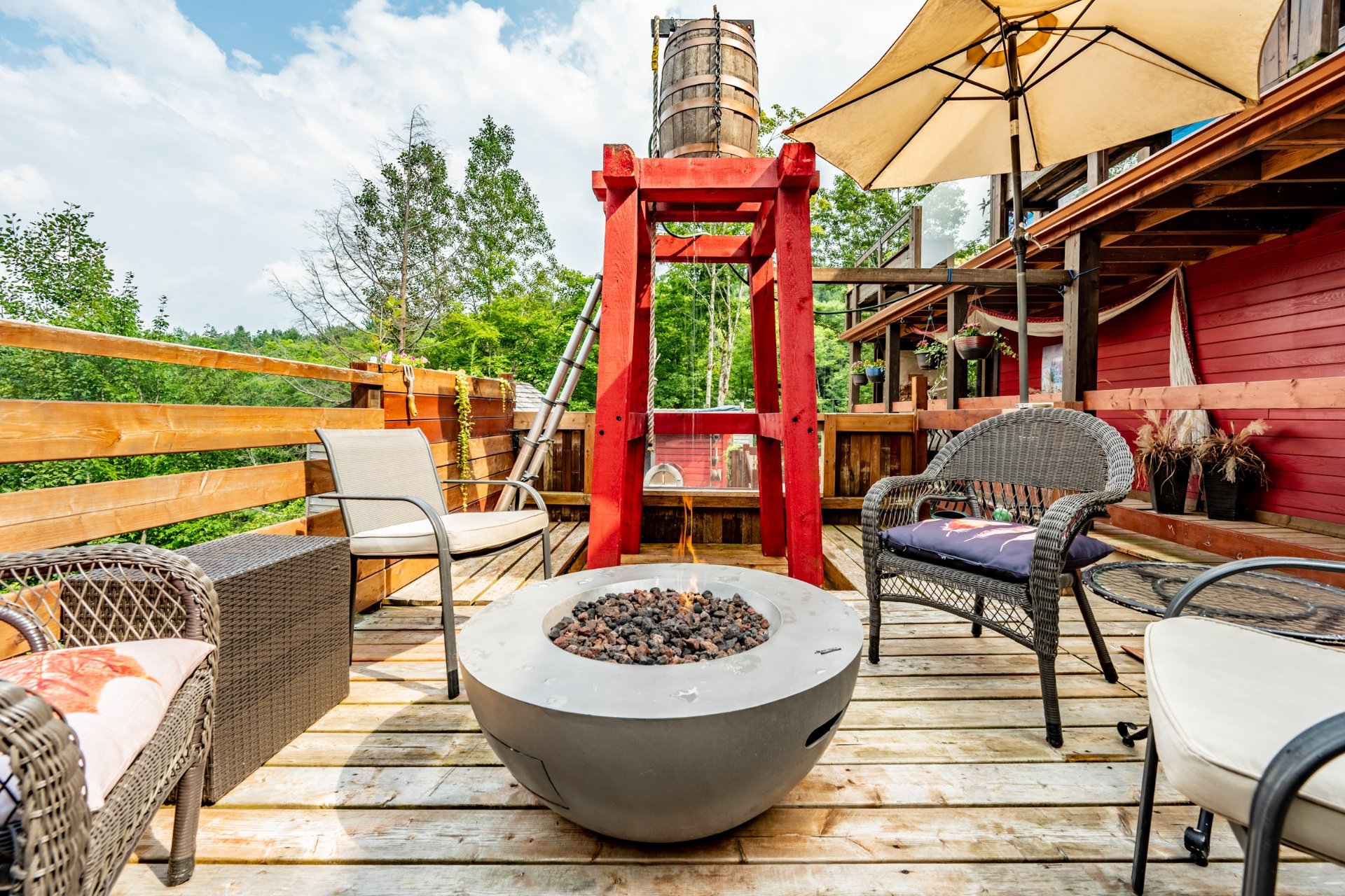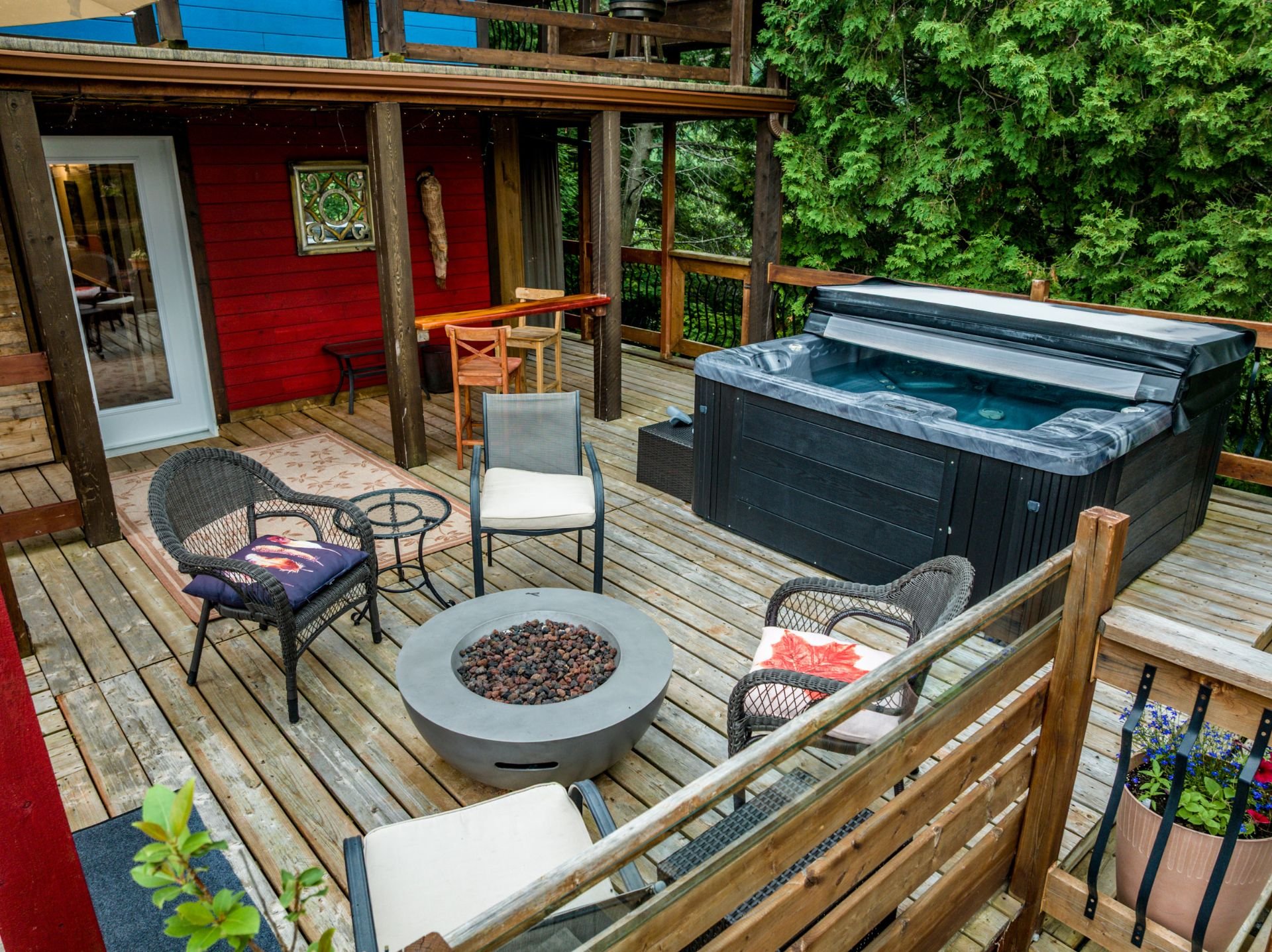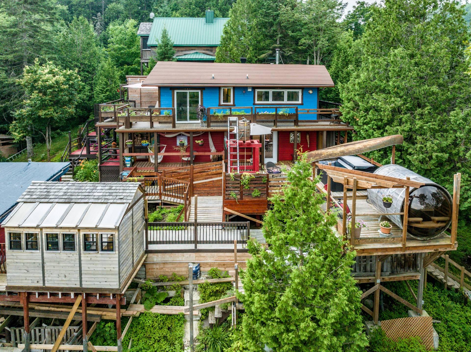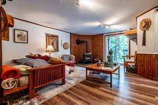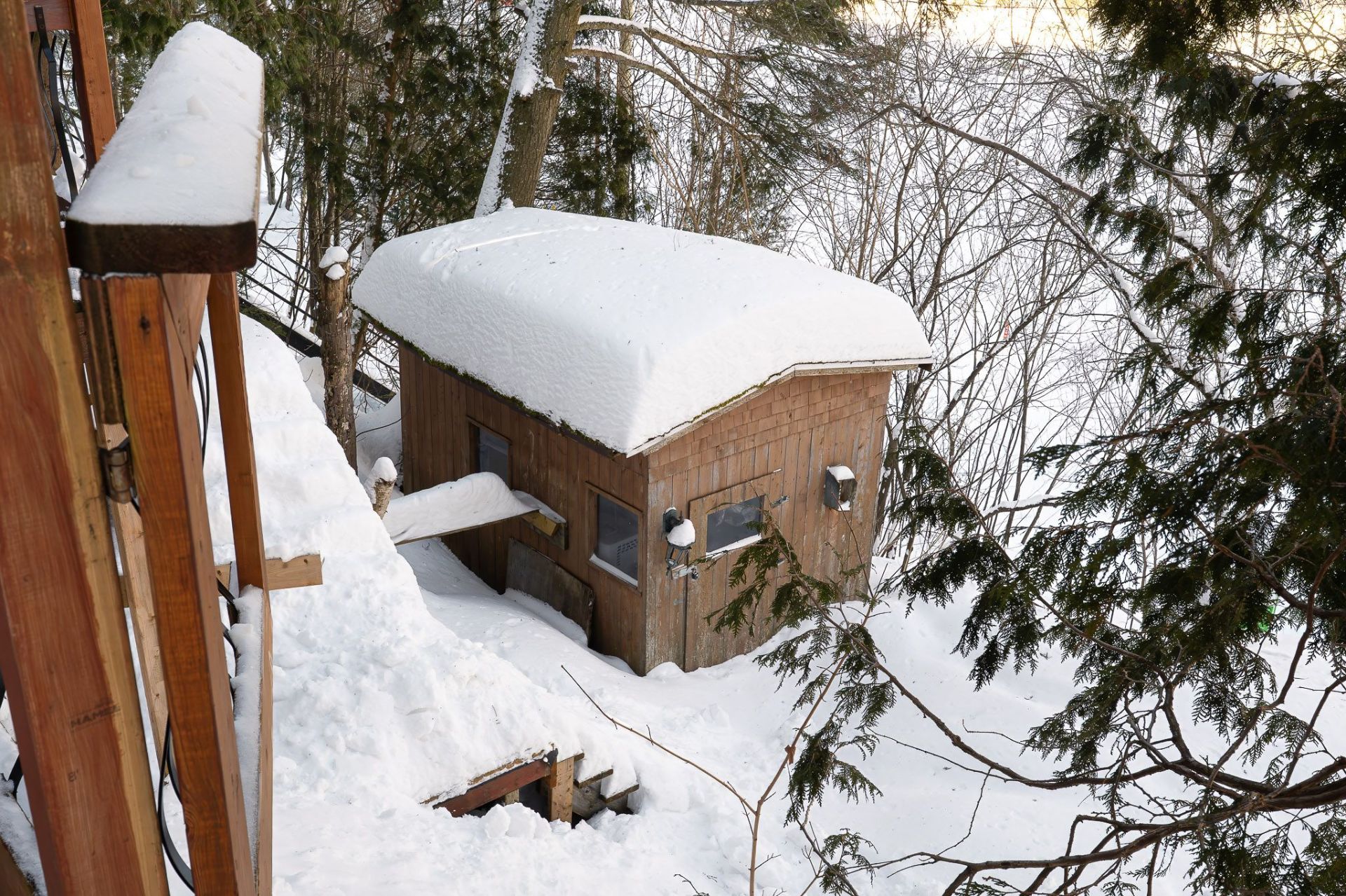 Inclus : Rideaux et stores (sauf dans chambre des maîtres). Cuisinière au gaz propane, cuisinière d'antan au bois, poêle à combustion lente et banc pour bois. Balayeuse centrale, réfrigérateur, lave-vaisselle, hotte, micro-ondes et grand îlot dans salle à dîner avec tabourets. Air climatisé/chauffage. Armoire de cuisine, meuble d'entrée et penderie, ventilateurs de plafond, spa et sauna et leurs mobiliers et foyer au propane. Support télé, bahut-buffet ancien dans salle à manger et meuble 3 portes au RDC