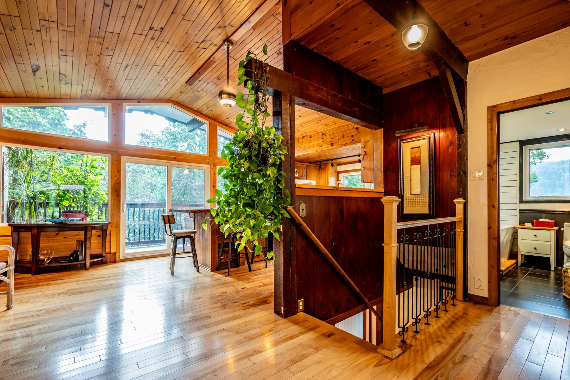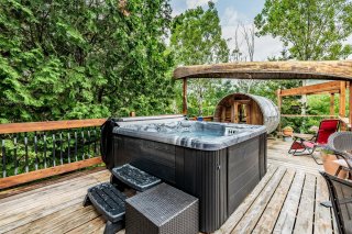 Superbe propriété située à Grandes-Piles où la détente et le calme sont à l'honneur! Cette résidence unique offre 3 chambres et 2 salles de bains, parfaites pour accueillir famille et amis dans le confort. Profitez d'une vue panoramique à couper le souffle sur la montagne depuis la vaste terrasse sur deux étages. Le spa et le sauna invitent à la relaxation après une journée en plein air ou au bord de la rivière Saint-Maurice. L'intérieur lumineux et chaleureux marie parfaitement confort moderne et charme naturel. Un véritable havre de paix pour les amoureux de la nature et du bien-être, à seulement quelques minutes de Shawinigan. Faites vite