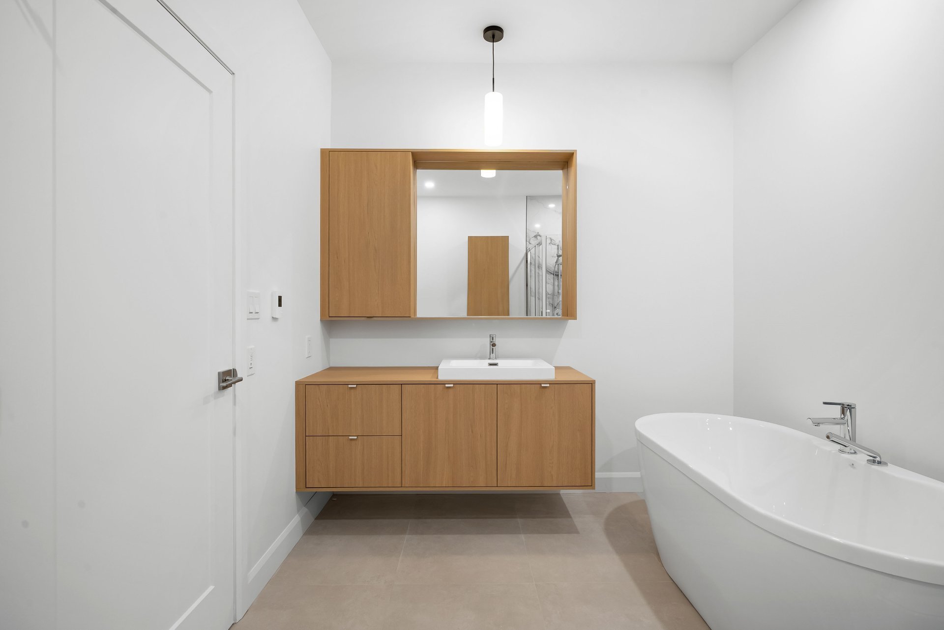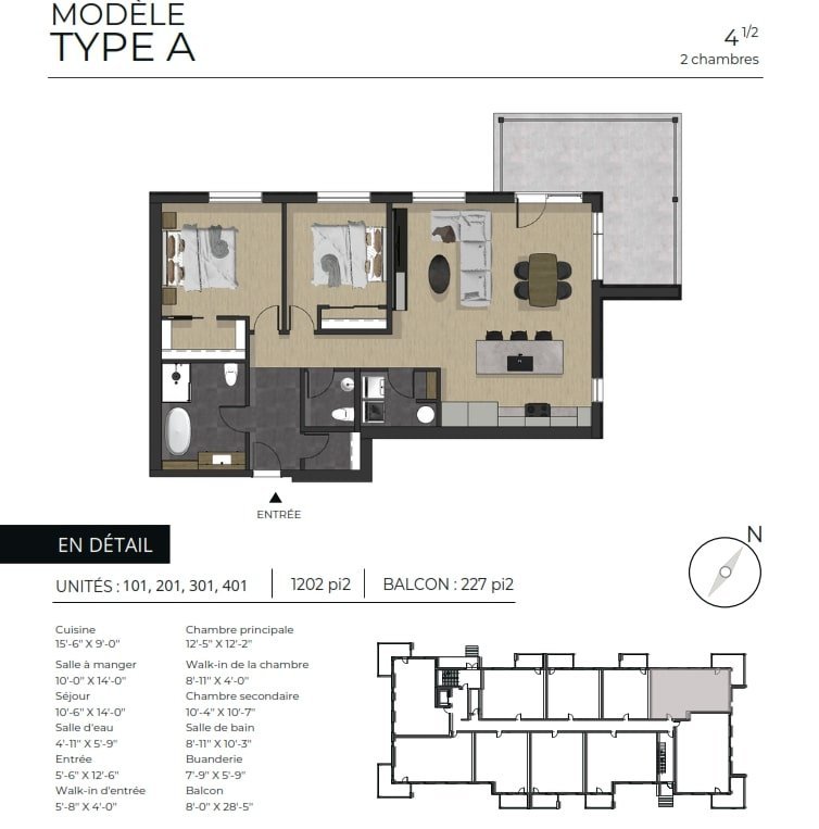 Chaque unité est conçue avec des matériaux de qualité et des finitions soignées, incluant comptoirs en quartz, plancher radiant dans la salle de bain, grand walk-in, vaste patio et station lave-auto.